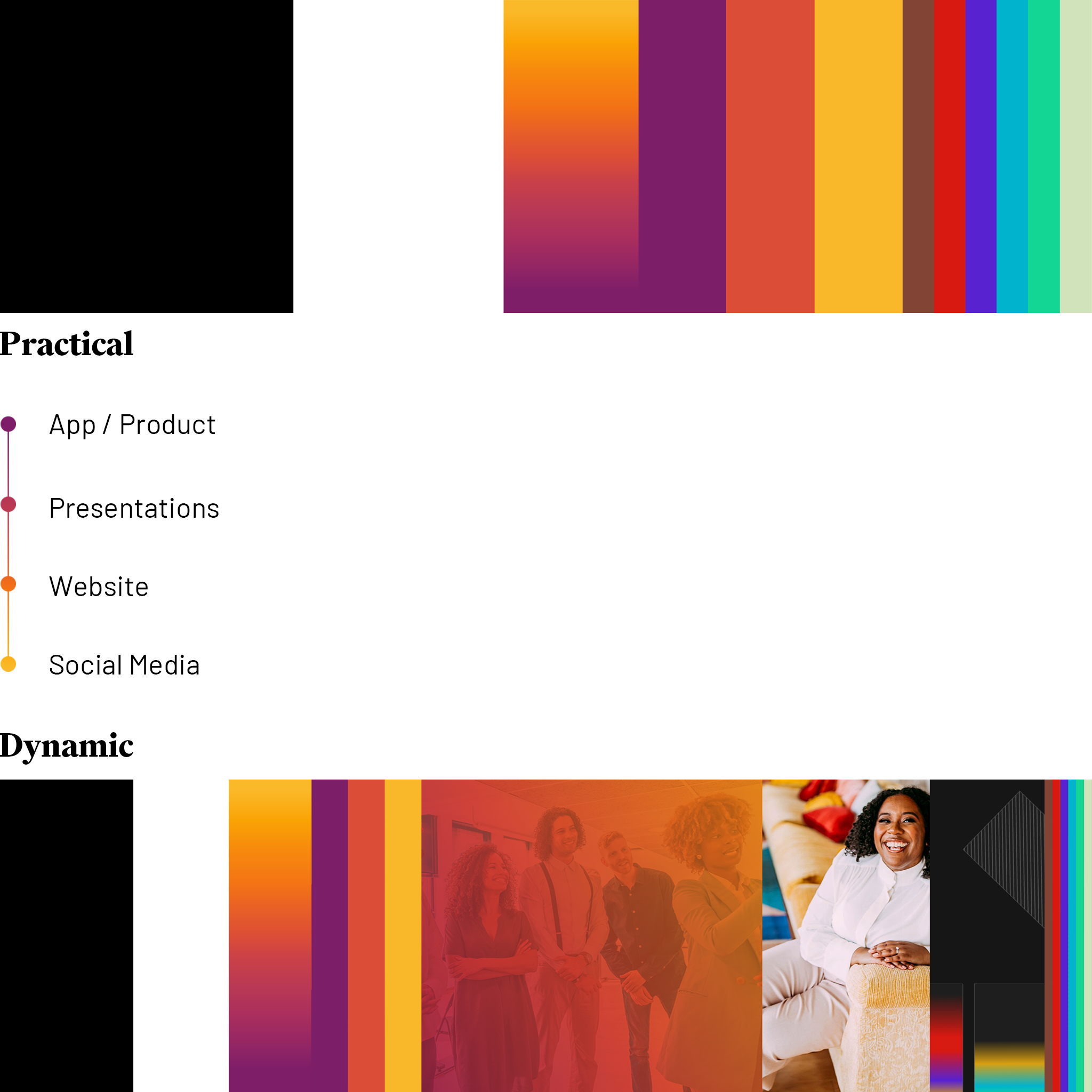 The commonalities of people are represented by the vibrancy of the colors. The uniqueness of people is represented through the various vibrant colors in the backgrounds or clothes. All harmonizing with the brand and overall brand palette, ensuring a cohesive visual story.